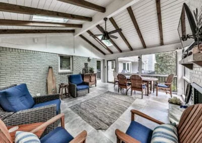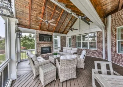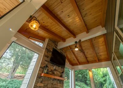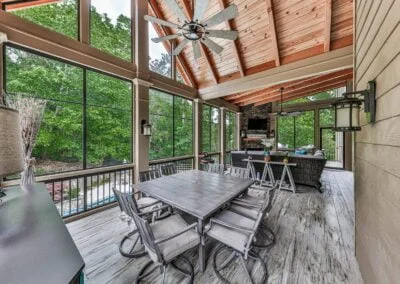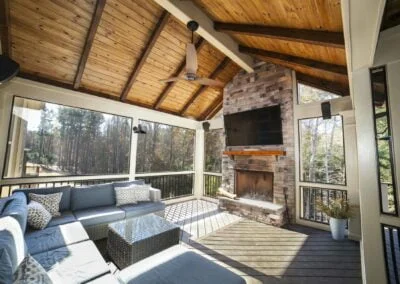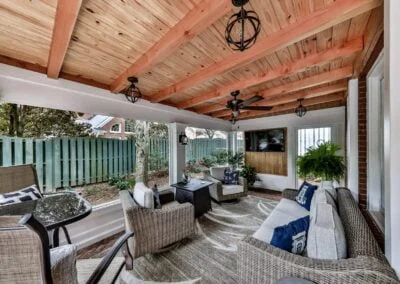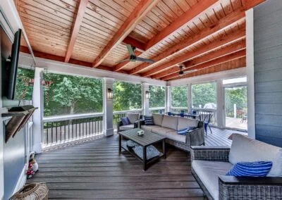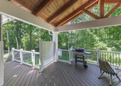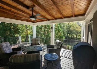 Cedar has a warm, rustic appearance with rich grain patterns and natural variations in color that add character and charm to the porch. Exposed cedar rafters and tongue and groove decking showcase the beauty of the wood, creating an inviting and timeless aesthetic that complements various architectural styles and outdoor settings.